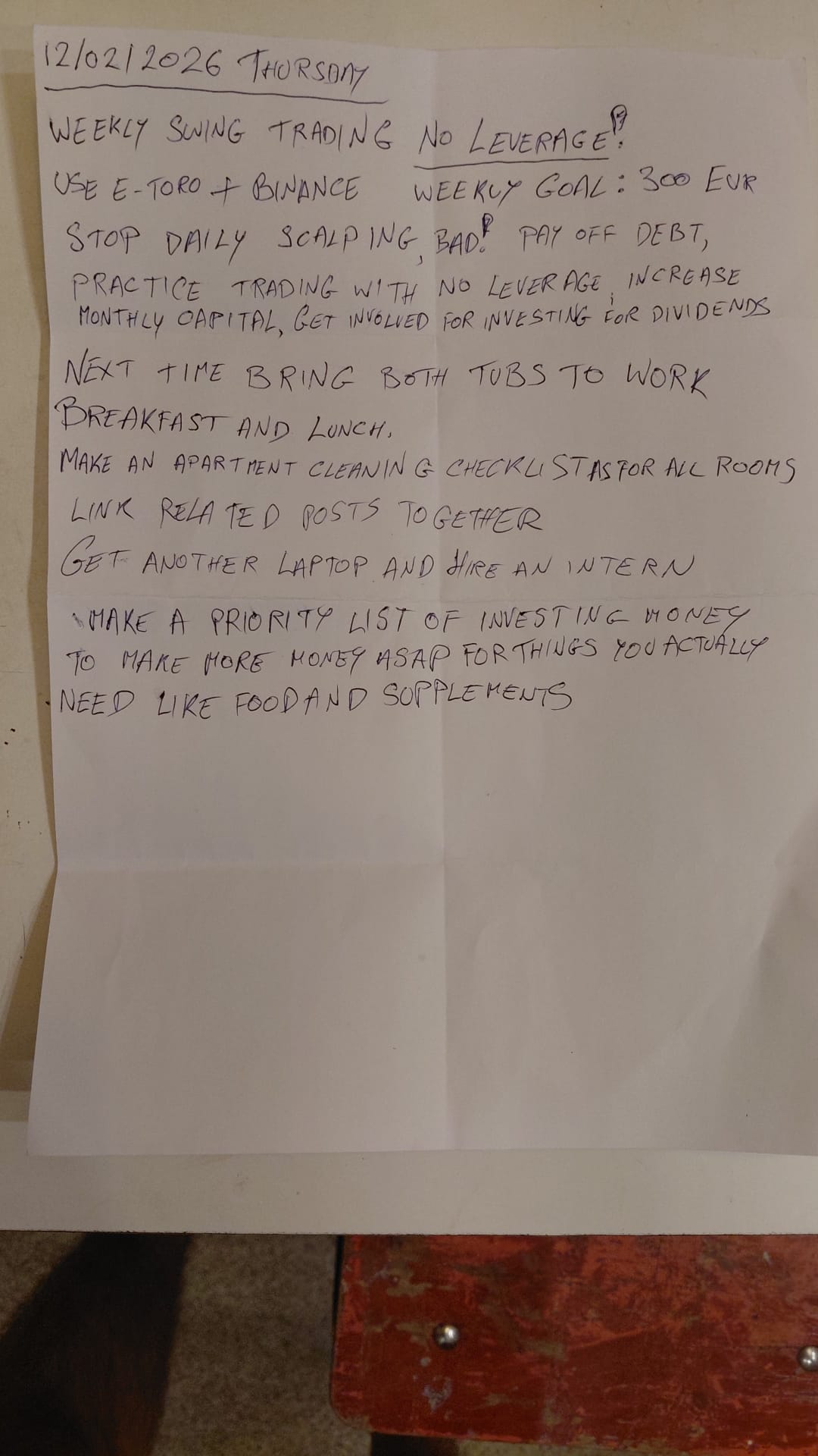 I do want to receive daily feedback even if it’s negative because every loss is a seed for success. However I would also like to distance myself from the whole trading scene while also being involved at the same time which is why I’ve decided to place trades using the 1Week timeframe instead of the 30Minute.