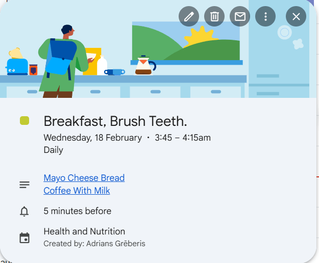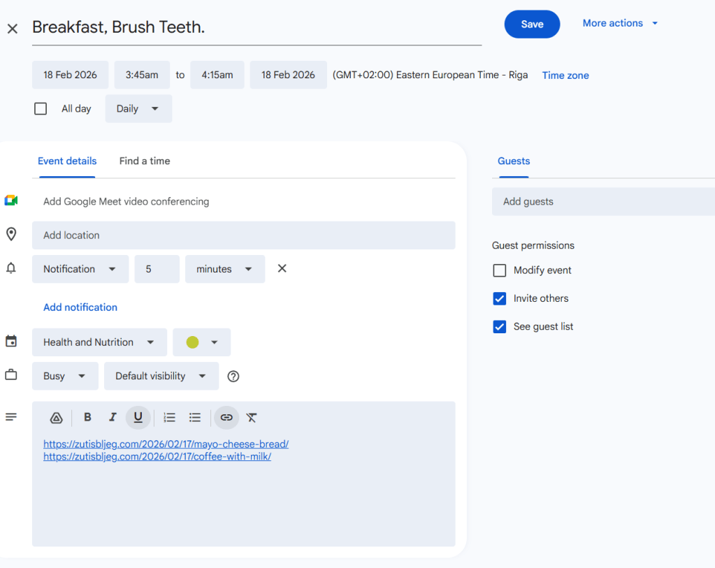 Now I can link these two items to my google calendar “breakfast” Events and know what I’ll have for breakfast on certain days.