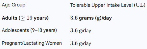 Exceeding the Tolerable Upper Intake Level (UL) for chloride, which is 3.6 grams/day for adults, is primarily a concern because of its nearly exclusive dietary association with sodium in the form of table salt (sodium chloride).